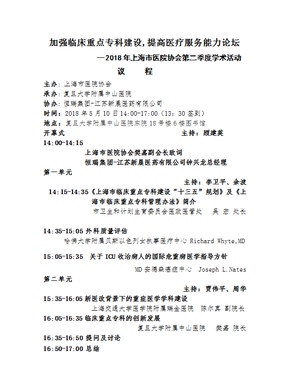 加強(qiáng)臨床重點(diǎn)?平ㄔO(shè),提高醫(yī)療服務(wù)能力論壇—2018年協(xié)會第二季度學(xué)術(shù)活動 議程
