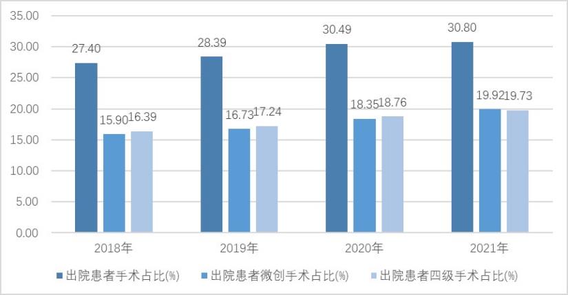 圖1  2018-2021年三級(jí)公立醫(yī)院出院患者手術(shù)開展情況