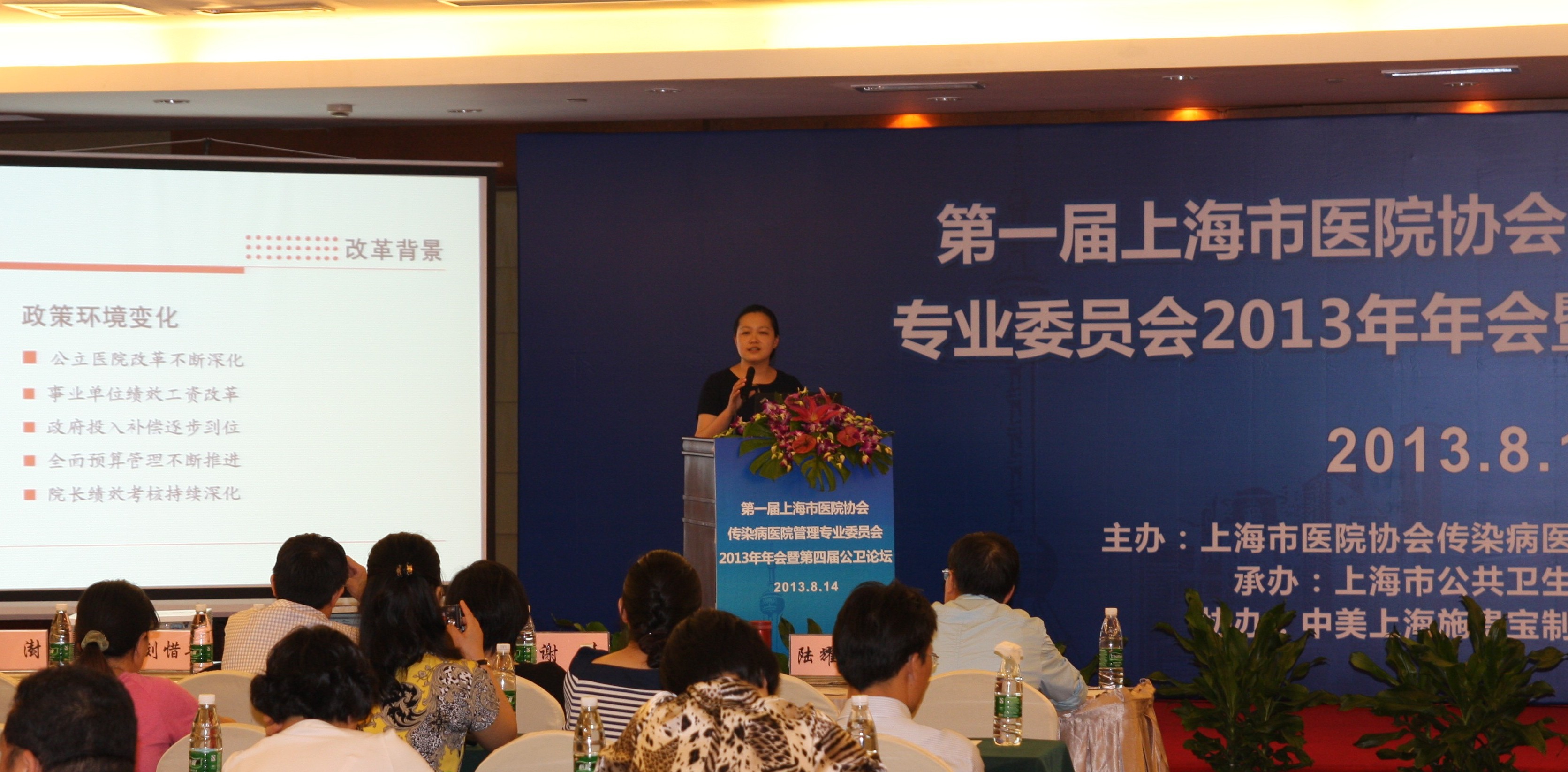 2013年8月14日下午上海市醫(yī)院協(xié)會第一屆傳染病醫(yī)院管理專業(yè)委員會(以下簡稱“專委會”)2013年年會暨第四屆公衛(wèi)論壇順利召開,來自本市二級、二級以上醫(yī)院分管領導和相關科室負責人以及上海市醫(yī)院協(xié)會傳染病醫(yī)院管理專委會委員、青年委員100余人冒著盛夏酷暑參加了本次會議。