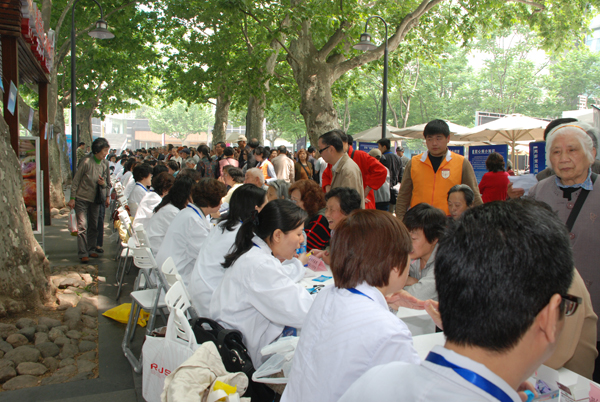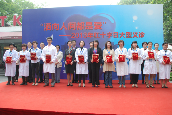 為了紀(jì)念第六十六個“世界紅十字日”,由上海市醫(yī)院協(xié)會醫(yī)務(wù)社工與志愿者服務(wù)工作委員會和上海市靜安區(qū)政協(xié)文化衛(wèi)生體育委員會聯(lián)合主辦、復(fù)旦大學(xué)附屬華山醫(yī)院承辦的“灑向人間都是愛”-2013年紅十字日大型義診活動,于2013年5月11日上午舉行在靜安公園舉行。來自華山、瑞金、中山、市六、華東、兒中心等十多家上海三甲醫(yī)院的40多位專家教授受邀為廣大市民提供免費的醫(yī)療咨詢及健康宣教,吸引了數(shù)千位市民前來參加。