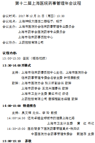 第十二屆上海醫(yī)院藥事管理年會議程