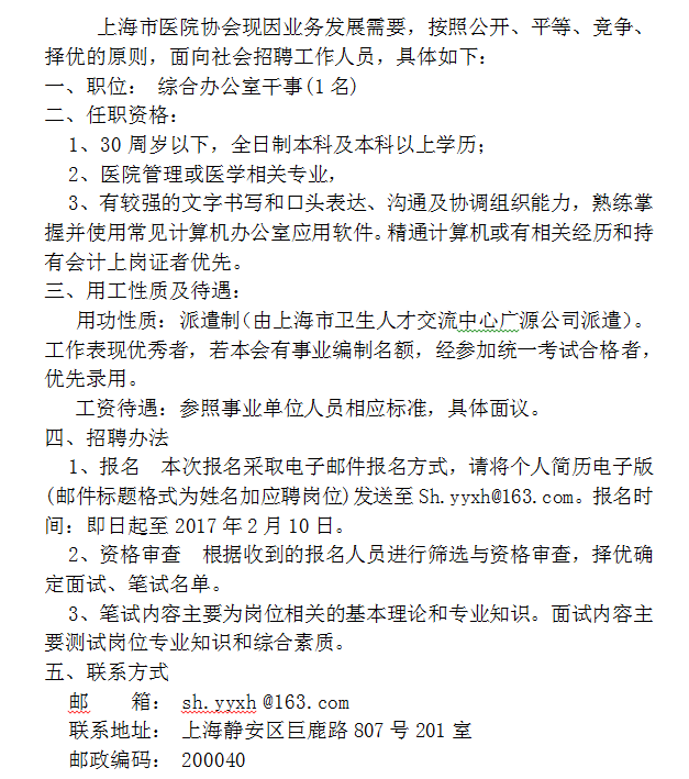 上海市醫(yī)院協(xié)會人員招聘公告