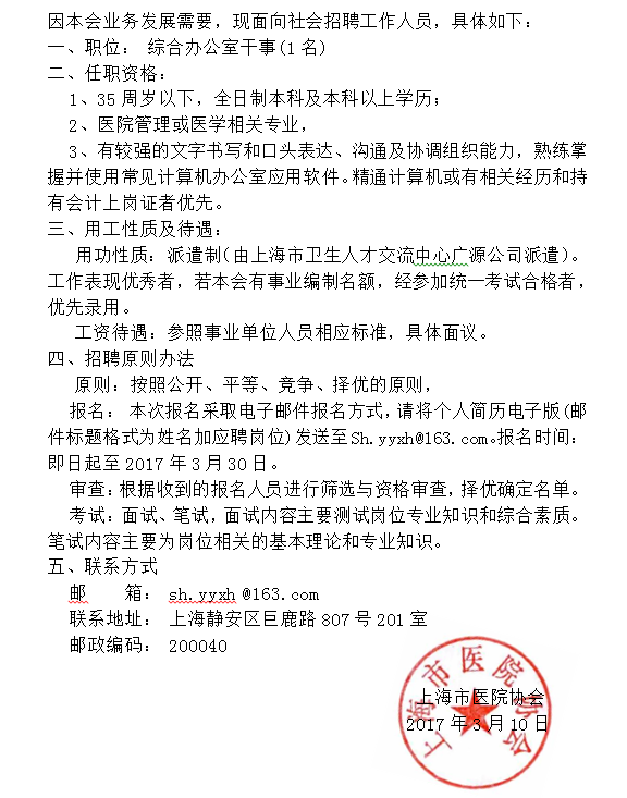 上海市醫(yī)院協(xié)會(huì)招聘公告